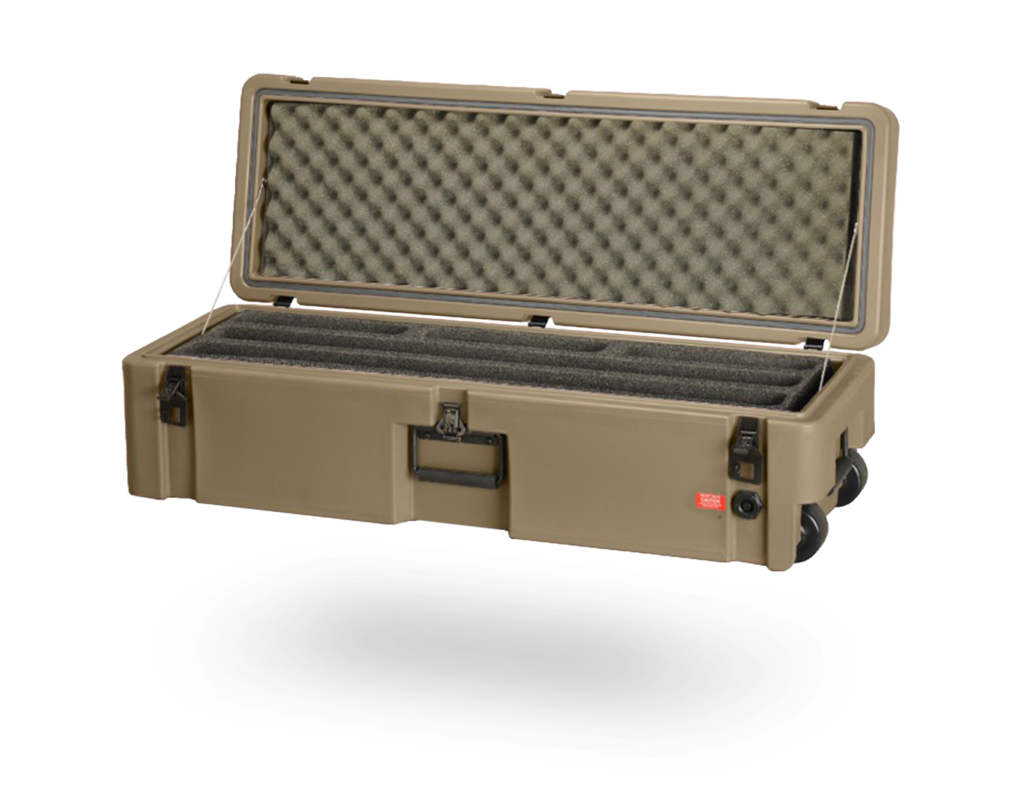 Battlefield tested, ruggedized Loadmaster® case with a cushion system designed to securely transport rifles.