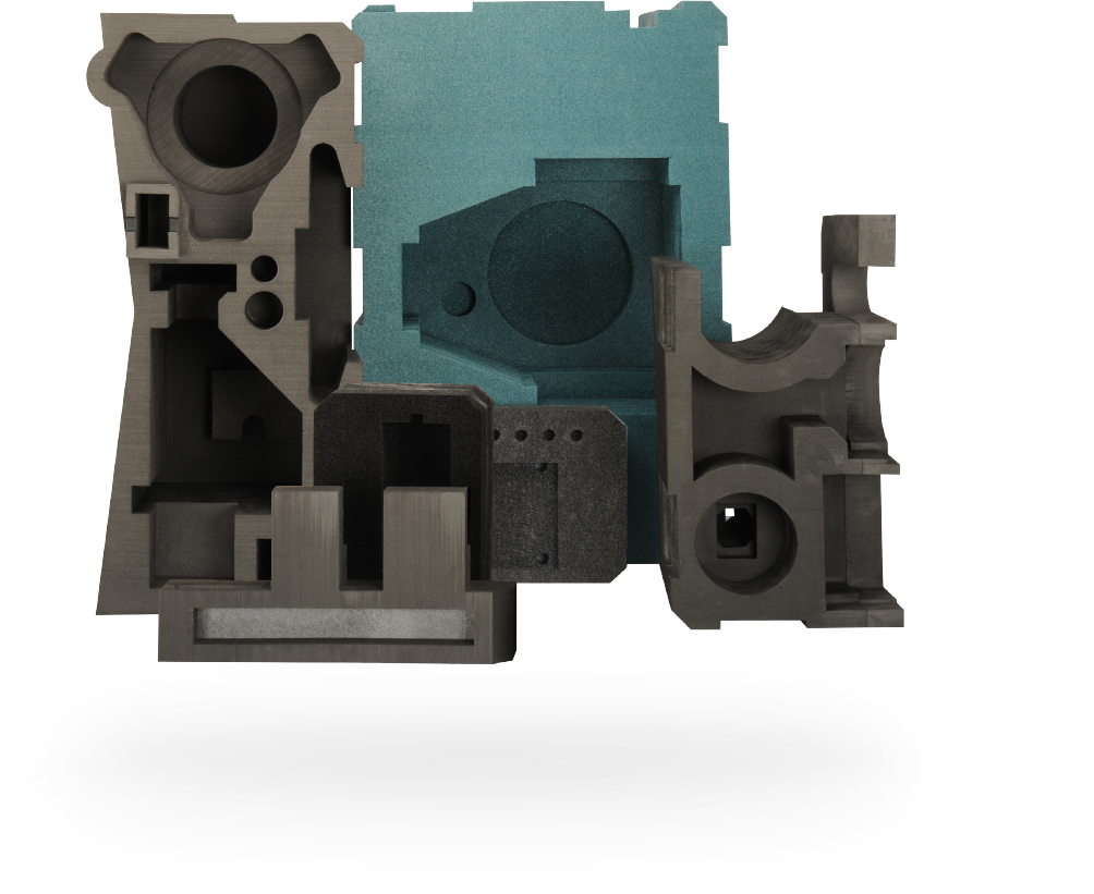 Individual cushion designs are created by ECS engineers to satisfy the shock and vibration protection requirements of each piece of equipment in an ECS case.